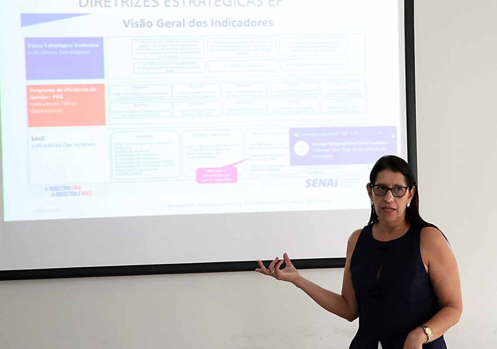 A gerente de Educação Profissional do SENAI e gerente da Escola SENAI Cel. Auton Furtado, Geane Reis, apresentou os objetivos estratégicos, as metas e os indicadores da área. “Esse alinhamento, logo no início do ano, é fundamental para direcionar nossas iniciativas, projetos e ações, assegurando o alcance das metas estabelecidas, a eficiência das atividades desenvolvidas e a qualidade da educação ofertada pelo SENAI”, ressaltou.